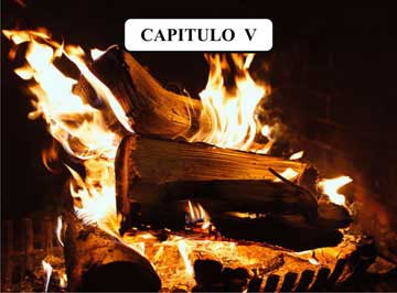 Se apaga poco a poco la luz del lado izquierdo y se ilumina el lado derecho, con unos tonos amarillos, ahora vemos la chimenea, o por lo menos su luz que hace bailar las sombras de los pocos muebles que ahí habitan.